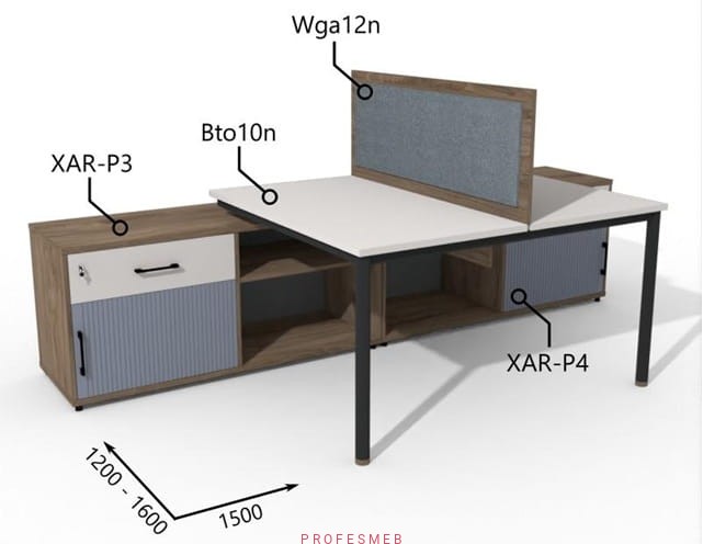 BIURKO ERGONOMICZNE NAKŁADANE BTO10N + KOMODA XAR P3 + KOMODA XAR P4 + PRZEGRODA WGA12N ZESTAW DLA 2 OSÓB