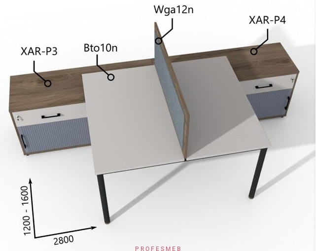 Biurko dwustanowiskowe z Komodami drzwiami przesuwnymi i szufladami oraz przegrodą 1200–1600 x2800mm Antrax Togar Bto10n XAR-P3 P4 Wga12n - Zestaw-129
