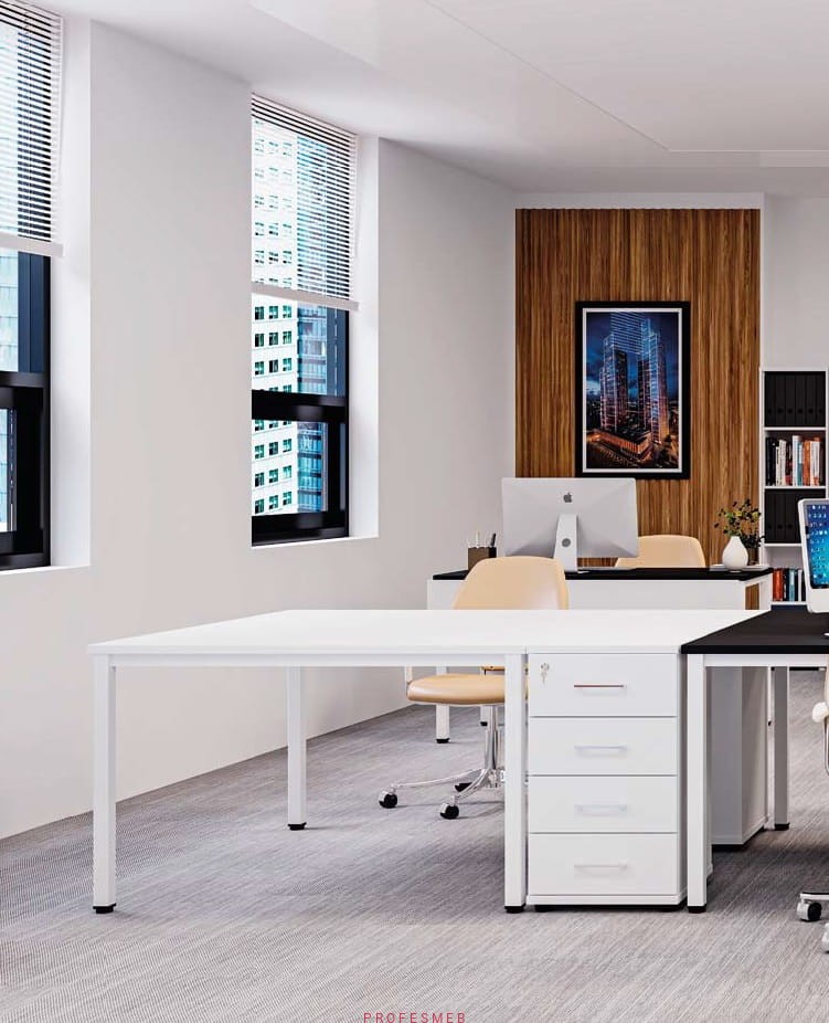 Proponujemy praktyczny zestaw mebli biurowych dla 2 osób, w którego skład wchodzą: