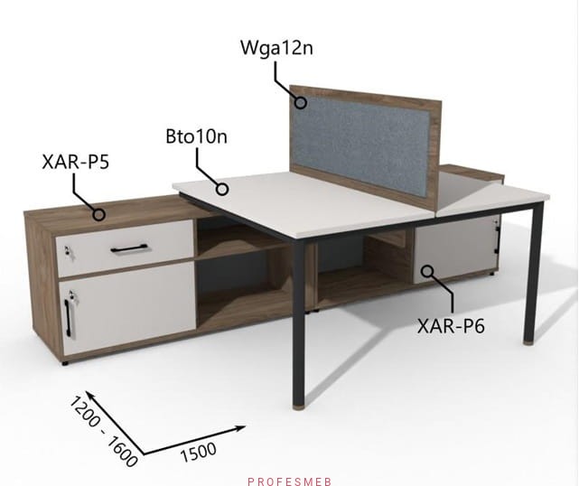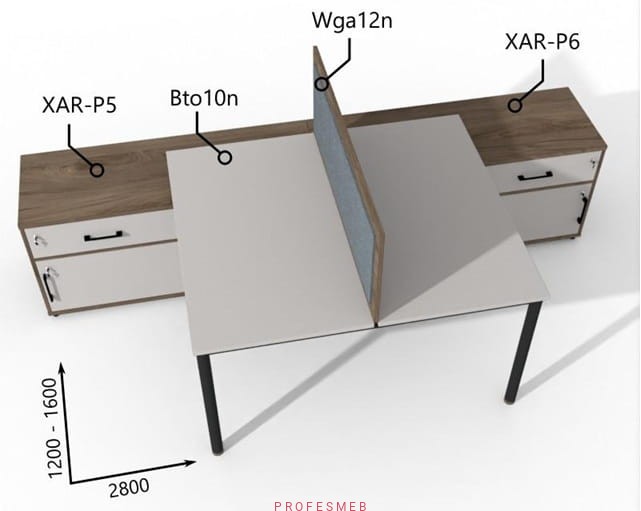 Biurko dwustanowiskowe z Komodami i szufladami oraz przegrodą 1200–1600 x2800mm Antrax Togar Bto10n XAR-P5 P6 Wga12n - Zestaw-130