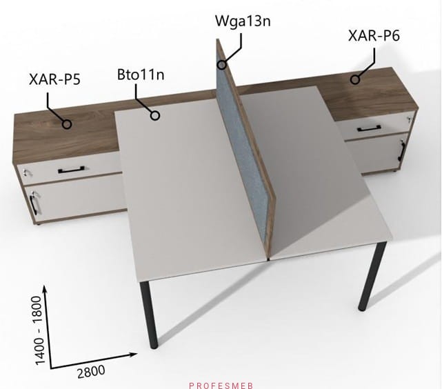 Biurko dwustanowiskowe z Komodami i szufladami oraz przegrodą 1400–1800 x2800mm Antrax Togar Bto11n XAR-P5 P6 Wga13n - Zestaw-133
