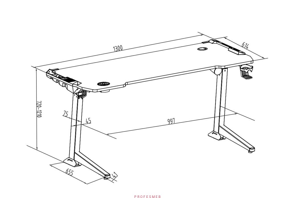 Biurko elektryczne gamingowe z regulowaną wysokością blatu 1300 x 614 mm V-GAME