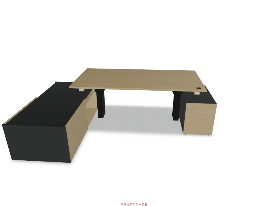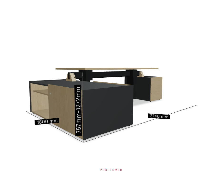 BIURKO Z ELEKTRYCZNĄ REGULACJĄ WYSOKOŚCI BLATU KOMODA Z DRZWIAMI PRZESUWNYMI I KONTENEREK NA KLUCZ ZESTAW 2740 x 1800 mm Viga