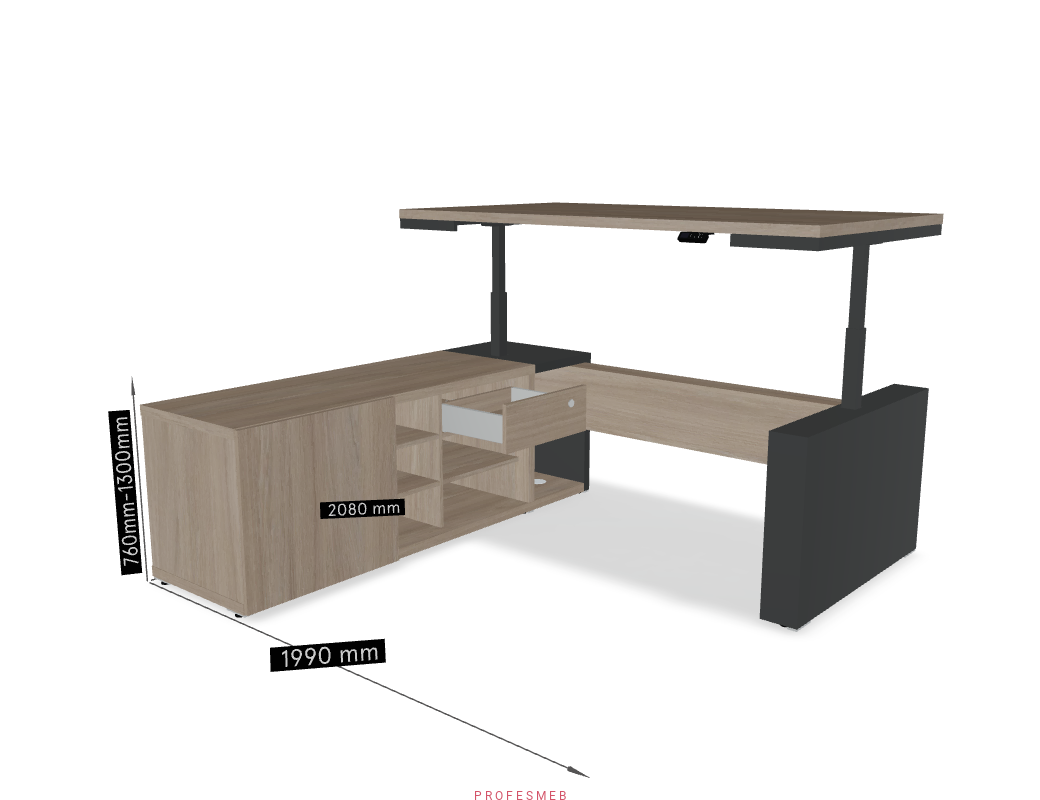 BIURKO Z ELEKTRYCZNĄ REGULACJĄ WYSOKOŚCI BLATU NOGI MAT DUŻA KOMODA ZESTAW 1990 x 2080 mm MITO MDD