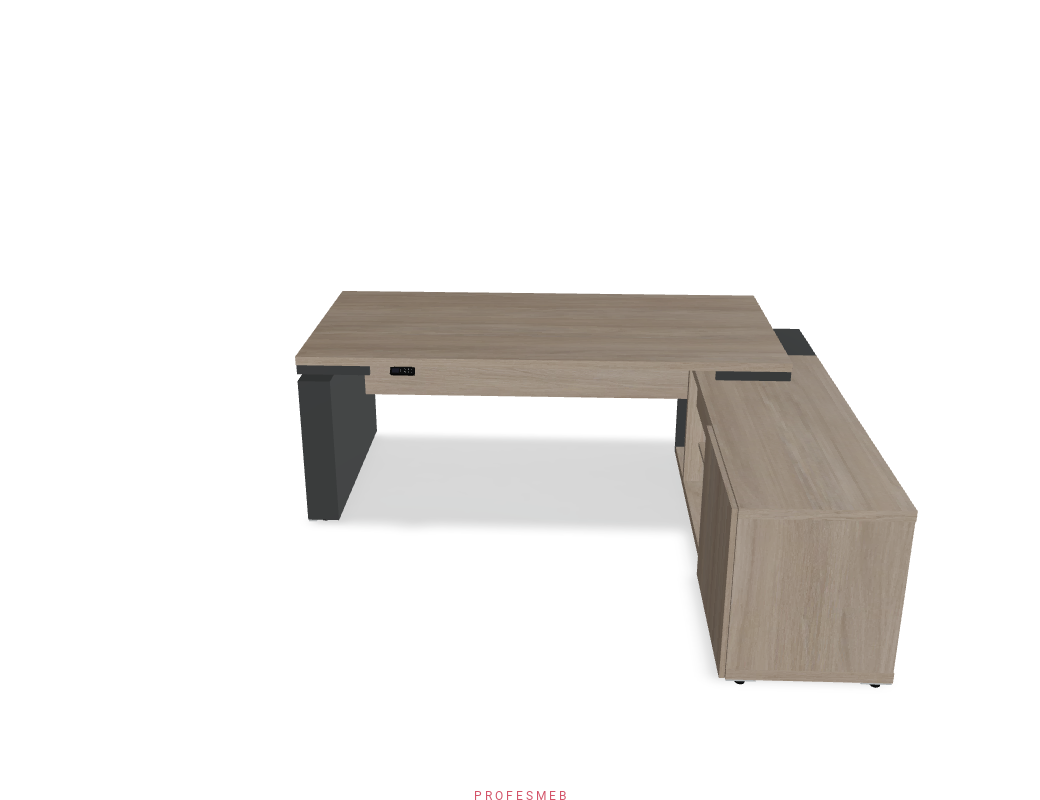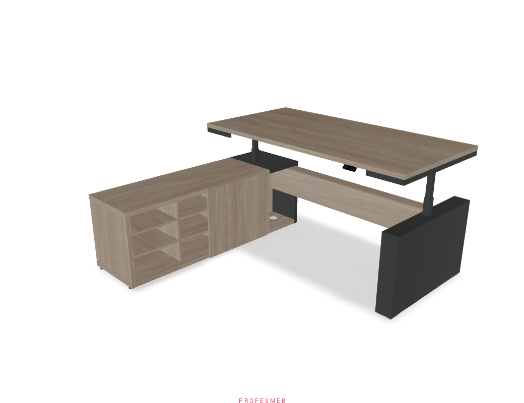 BIURKO Z ELEKTRYCZNĄ REGULACJĄ WYSOKOŚCI BLATU NOGI MAT DUŻA KOMODA ZESTAW PRAWY 2190 x 2080 mm MITO MDD