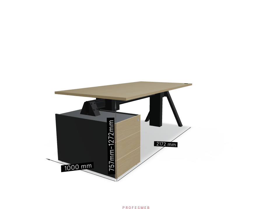 Biurko elektryczne z regulacją wysokości blatu i kontenerkiem 2172 x 1000 mm Viga