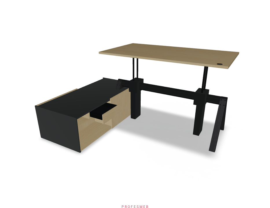 - Regulacja wysokości blatu: Przejdź płynnie od pozycji siedzącej do stojącej, co poprawia ergonomię i zdrowie.