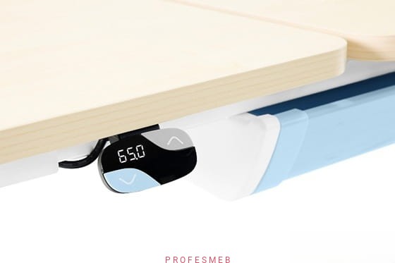 - Elektryczny system pozwala na płynne dostosowanie wysokości biurka do wzrostu dziecka, wspierając prawidłową postawę podczas nauki i zabawy.