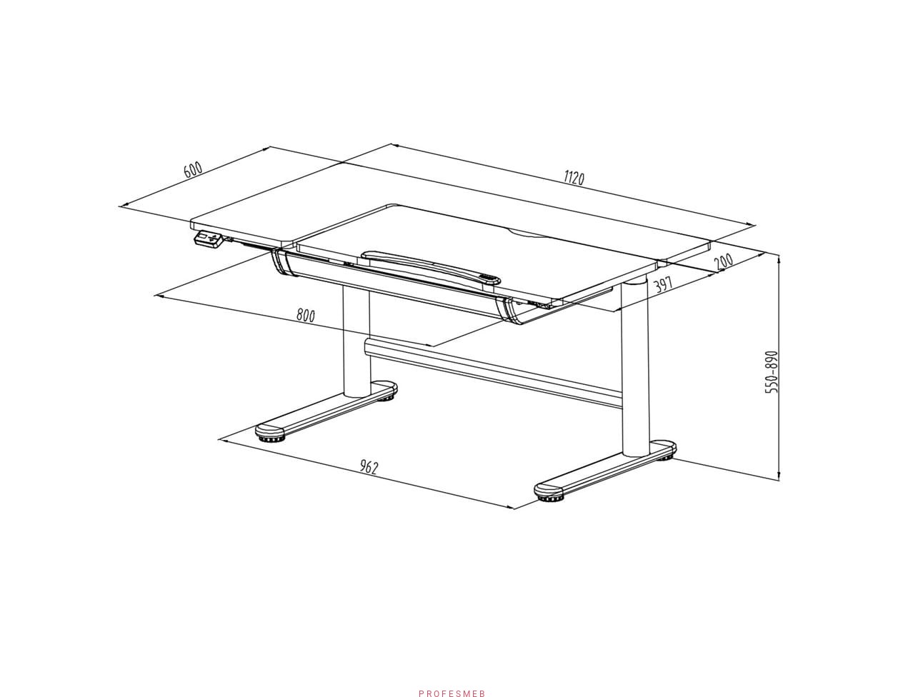 BIURKO ELEKTRYCZNE DLA DZIECI ENDO Z REGULACJĄ WYSOKOŚCI BLATU I SZUFLADA NACHYLENIE BLATU DO 40° 1120 x 600 mm UNIQUE