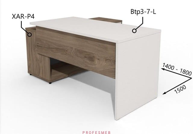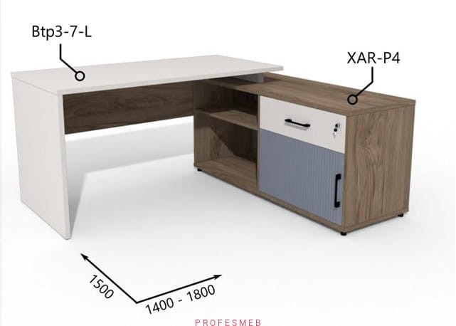 Biurko z Komodą drzwiami przesuwnymi i szufladą 1400–1800 x1500mm Antrax Simplex Btp3-7-L XAR-P4 - Zestaw-202-P