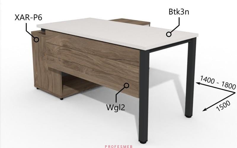 Biurko z Komodą i szufladami oraz maskownica 1400–1800 x1500mm Antrax Texar Btk3n XAR-P6 Wgl2 - Zestaw-15-P