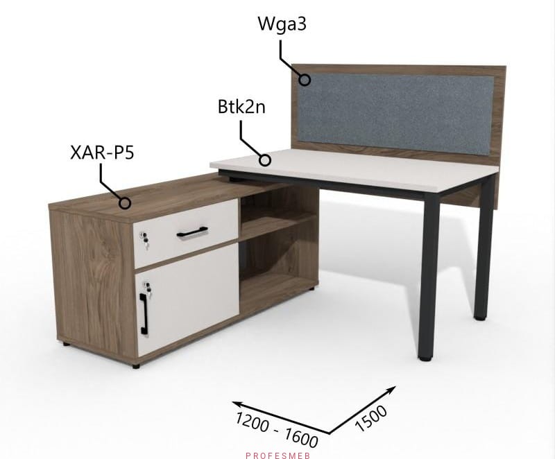 Biurko z Komodą i szufladami oraz przegrodą 1200–1600 x1500mm Antrax Texar Btk2n XAR-P5 Wga3 - Zestaw-9-L