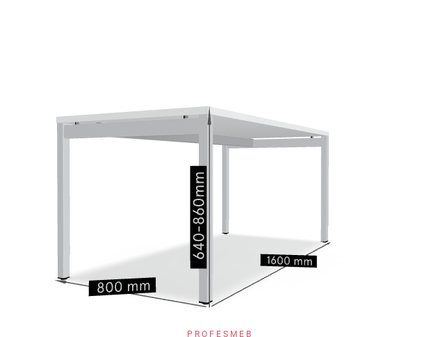- Mechanizm regulacji: Ręczna, skokowa co 20mm regulacja wysokości blatu za pomocą nóg stelaża (640-860 mm)