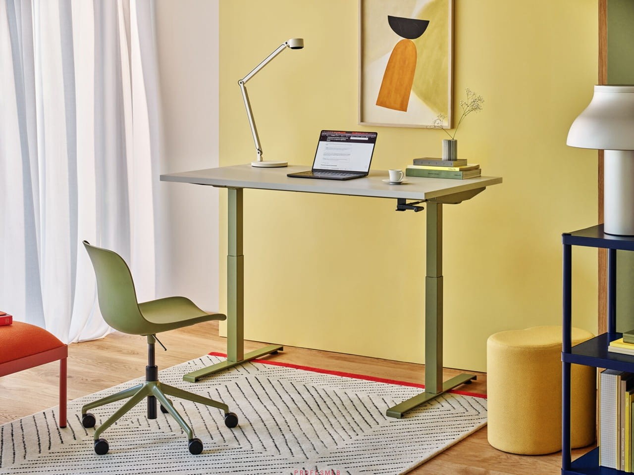 Biurko OGI Y wspiera zdrową postawę, umożliwiając łatwe przechodzenie między pozycją SIT-STAND, co przyczynia się do poprawy komfort dzięki utrzymaniu zdrowej postawy w home office.