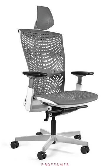 Fotel biurowy REYA elastomer Unique z regulowanymi podłokietnikami 2D mechanizmem synchron, wewnętrznym układem sprężyn spiralnych