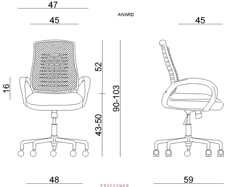 Krzesło AWARD zostało wykonane z solidnych materiałów, a zastosowana tkanina PS wyróżnia się odpornością na ścieranie – aż 50 000 cykli Martindale'a. To fotel, który przetrwa intensywną pracę każdego dnia.