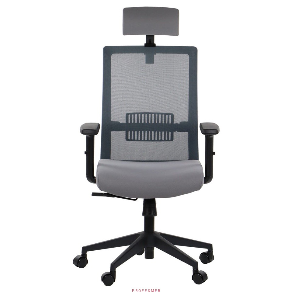 Fotel biurowy obrotowy Riverton M/H z oparciem na głowę siedziskiem tapicerowanym szarym podłokietniki i regulacja podparcia lędźwi