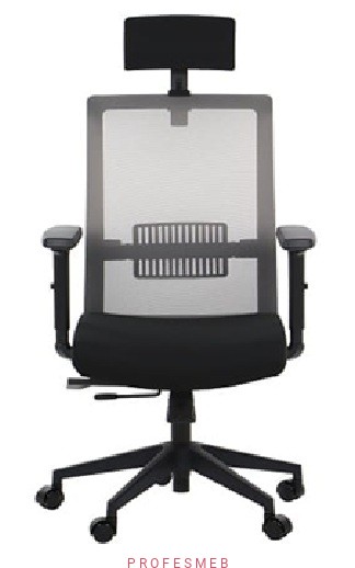 Fotel biurowy obrotowy Riverton M/H z oparciem na głowę siedzisko tapicerowane czarne oparcie szare podłokietniki i regulacja podparcia lędźwi