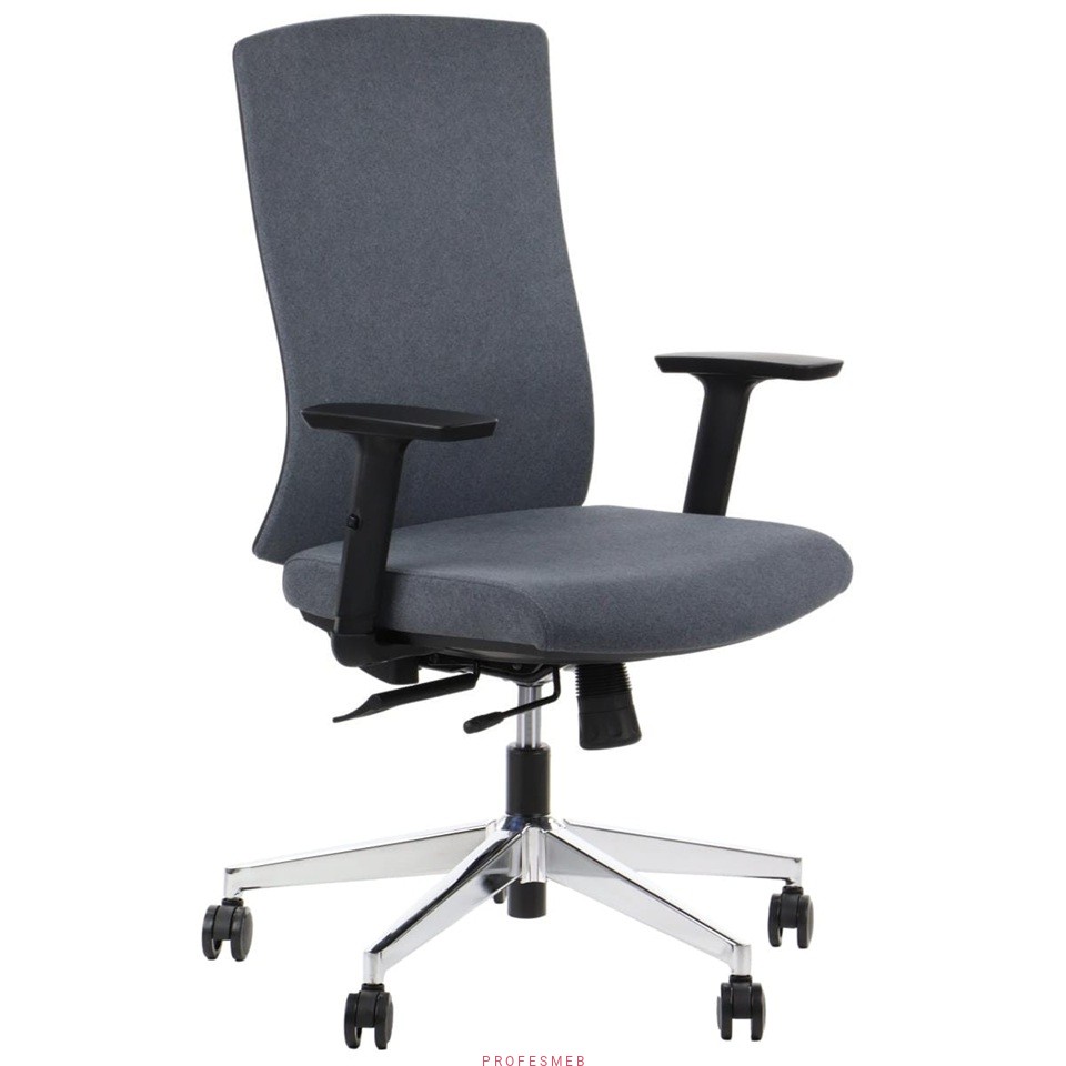 Fotel ergonomiczny obrotowy UNO-T tapicerka grafitowa podstawa chrom z regulowanymi podłokietnikami i wysokości podparcia lędźwiowego
