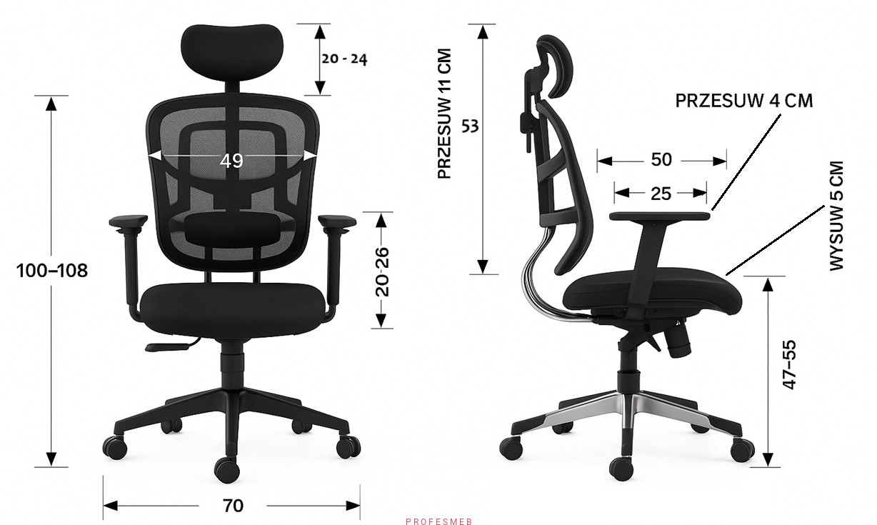Dostosuj wysokość oparcia do wzrostu – krzesło rośnie razem z Tobą.