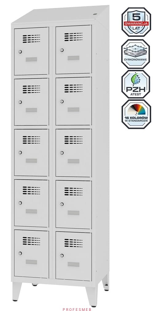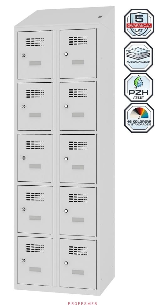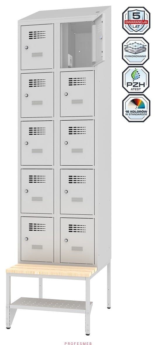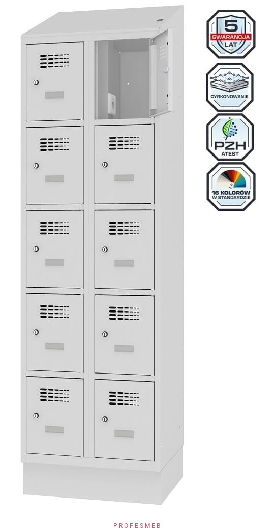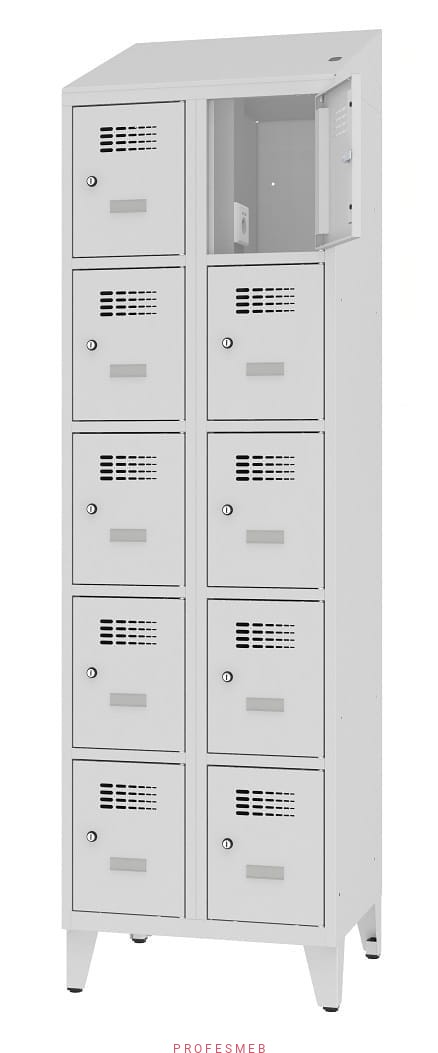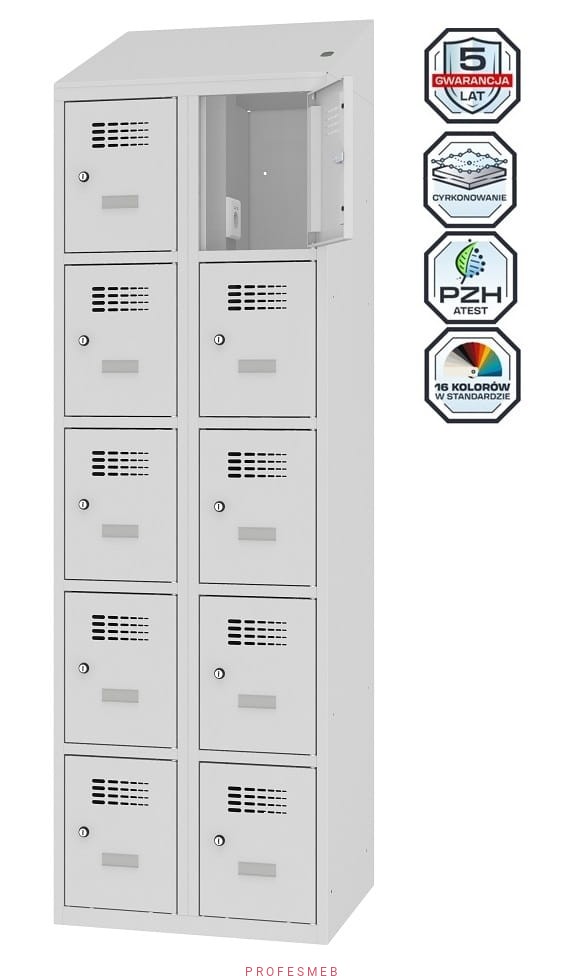 Metalowa szafka 10-skrytkowa MSUS 325v na nóżkach z wyposażeniem elektrycznym i USB