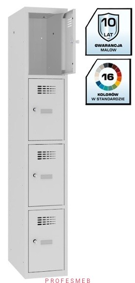 Metalowa szafka szkolna SMS 314 lx 4-skrytkowa z ogranicznikiem otwarcia