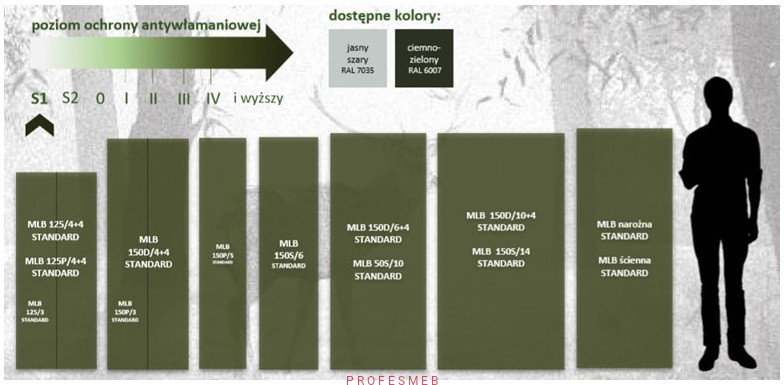 Sejf pancerny na broń długą i krótką 20 sztuk MLB 150D/10+5 klasa S1 zamek kluczowy klasy A