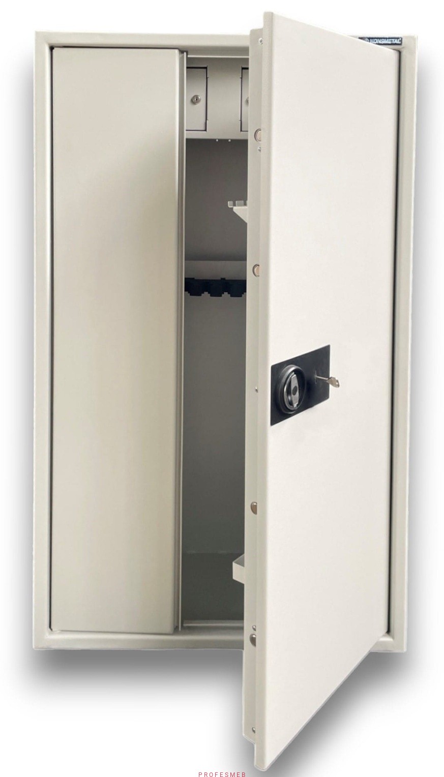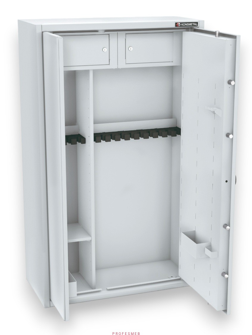 Model: KONSMETAL MLB2 150D/10+5 → Sejf na broń z układem uchwytów 10+5 i rozbudowaną organizacją drzwi.