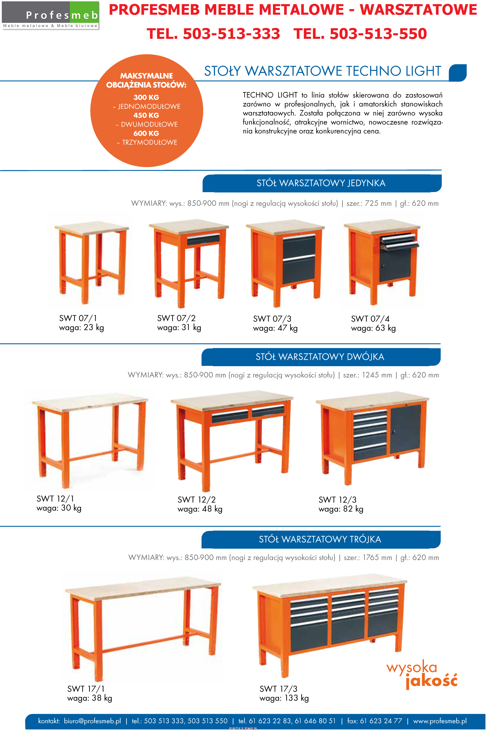 Nasz sklep internetowy Profesmeb.pl oferuje szeroką gamę mebli warsztatowych Techno Light - to najnowsza linia stołów warsztatowych skierowana do zastosowań zarówno w profesjonalnych, jak i amatorskich stanowiskach warsztatowych. Naszą ideą było stworzenie produktu w oparciu o nieocenione opinie i sugestie szerokiej liczby użytkowników, dzięki którym udało się połączyć wysoką funkcjonalność, atrakcyjne wzornictwo, nowoczesne rozwiązania konstrukcyjne oraz konkrecyjną cenę. Zachęcamy Państwa do wyboru naszych profesjonalnych mebli warsztatowych mając nadzieję, że Państwa oczekiwania zostaną spełnione a radość z użytkowania linii Techno Light pozostanie na długie lata.