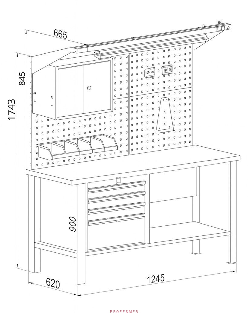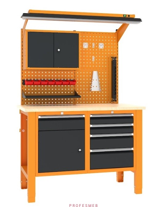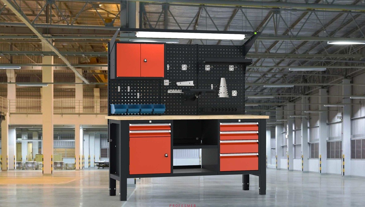 Stół warsztatowy do zabudowy Techno Light SWT 12/11 MALOW z szufladami i tablicą perforowaną na narzędzia