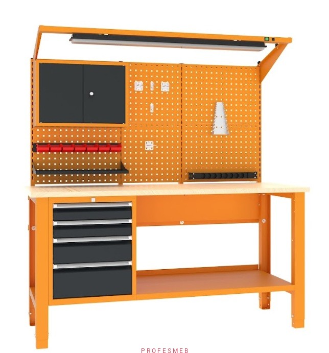 Stół warsztatowy do zabudowy Techno Light SWT 17/12 MALOW w systemie 5S z szufladami i tablicą perforowaną