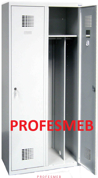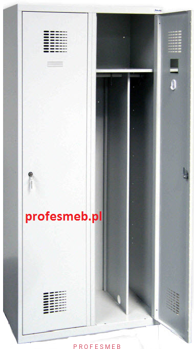 Szafka pracownicza dwudrzwiowa do szatni z podziałem odzieży. Każda komora o szerokości 40 cm jest podzielona na 2 części (25cm/15cm) do dyspozycji pracownika jest przedział na odzież czystą i brudną.