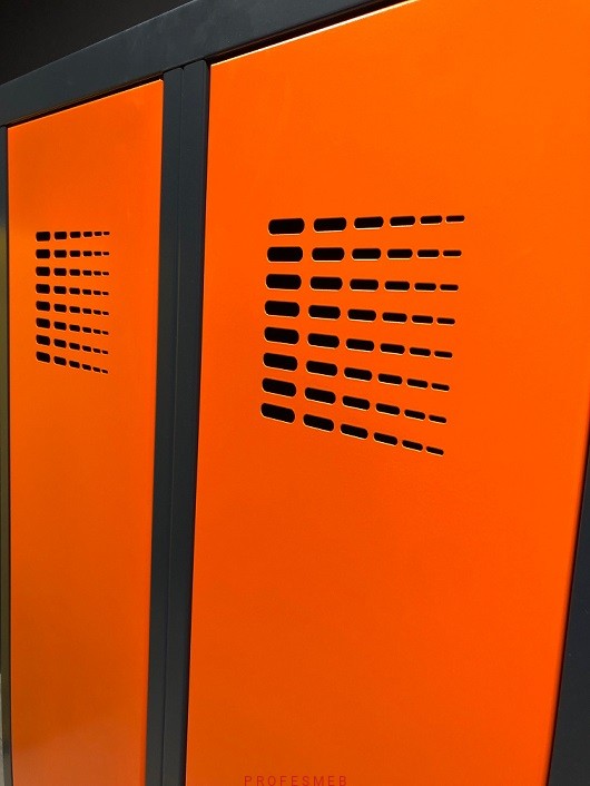 Metalowa szafa socjalna ubraniowa SUM 420 do przebieralni w kolorze grafitowo pomarańczowym