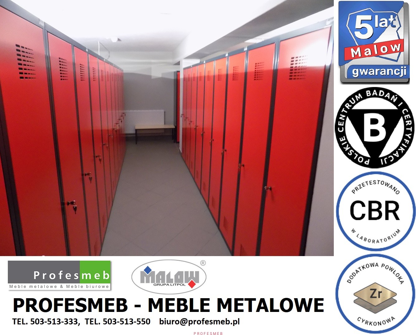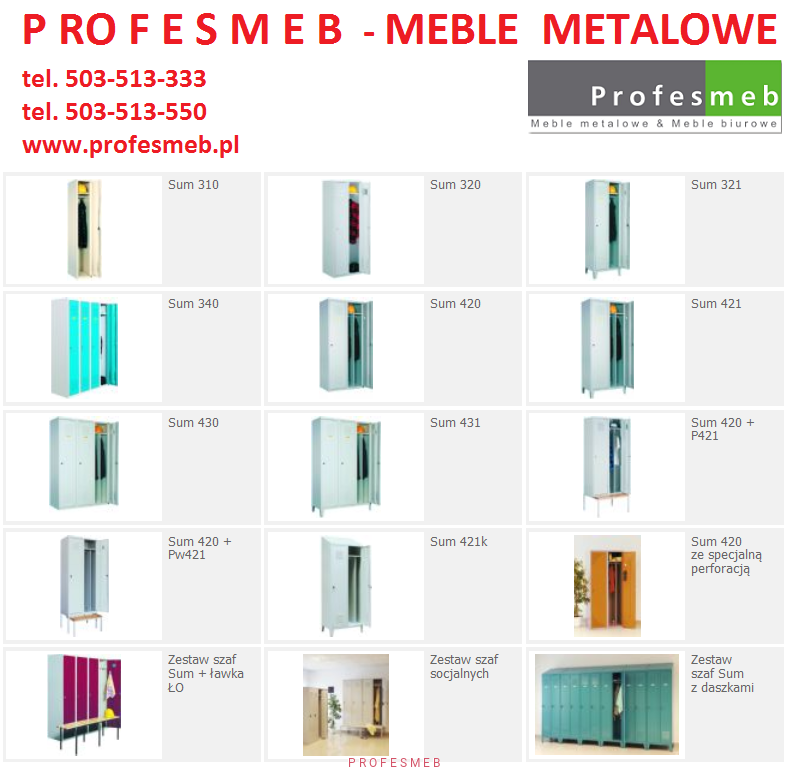 Na stronie www.profesmeb.pl znajdziesz także inne tanie meble metalowe, szafy kartotekowe, szafy aktowe, szafki ubraniowe, sejfy i szafy ognioodporne, metalowe regały magazynowe, regały jezdne, szafki szkolne i wiele innych produktów wyposażenia biura, archiwum, pomieszczeń magazynowych i socjalnych. Malow szafy socjalne najtaniej !!!
