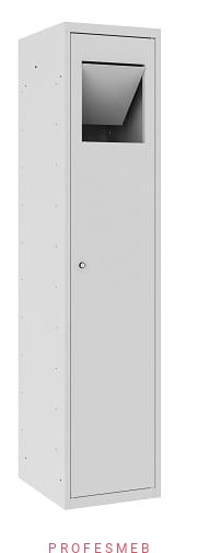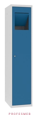 Szafa do przechowywania brudnej odzieży. Wykonana z blachy stalowej gr. 0,8 mm. Centralnie ryglowane drzwi.Szafa osadzona na nogach skośnych o wys. 140 mm.