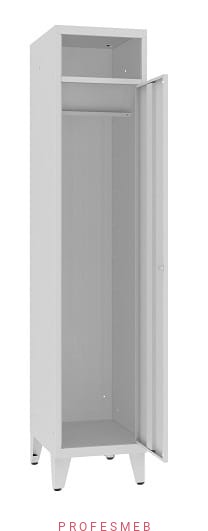 Szafa do przechowywania brudnej odzieży. Wykonana z blachy stalowej gr. 0,8 mm. Centralnie ryglowane drzwi, nad którymi otwór na brudną odzież.