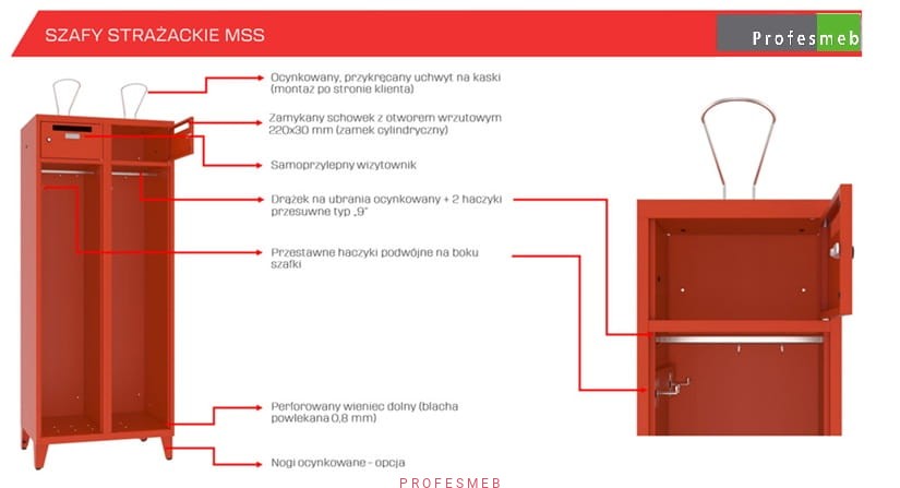 Szafa do straży pożarnej metalowa 1 komorowa na nogach MALOW MSS 411 z uchwytem na hełm i szafeczką z wrzutem na rzeczy osobiste