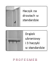- przedzielone pionową przegrodą, gdzie obie części posiadają półkę i drążek z 3 haczykami na odzież (MSU 63, 83)