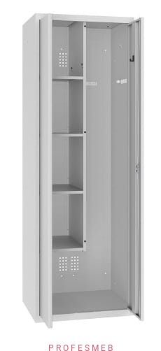 - przedzielone niepełną pionową przegrodą, gdzie w lewej części są 4 półki, a w prawej przedział ze specjalnymi uchwytami na wiadro, na szczotki i mopy oraz miejscem na wiadro (MSU 62, 82)