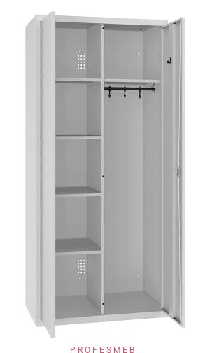 - przedzielone niepełną pionową przegrodą, gdzie w lewej części są 4 półki, a w prawej przedział ze specjalnymi uchwytami na wiadro, na szczotki i mopy oraz miejscem na wiadro (MSU 62, 82)