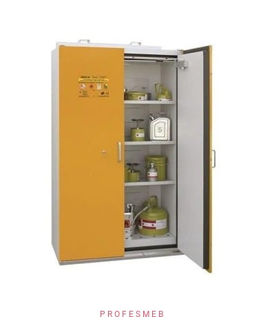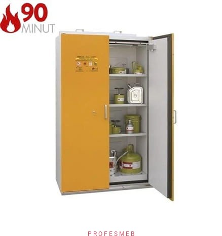 Szafa ognioodporna 90 min żółta 2 drzwiowa na materiały łatwopalne niebezpieczne samozamykacz 3 półki