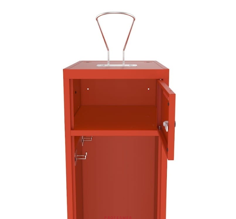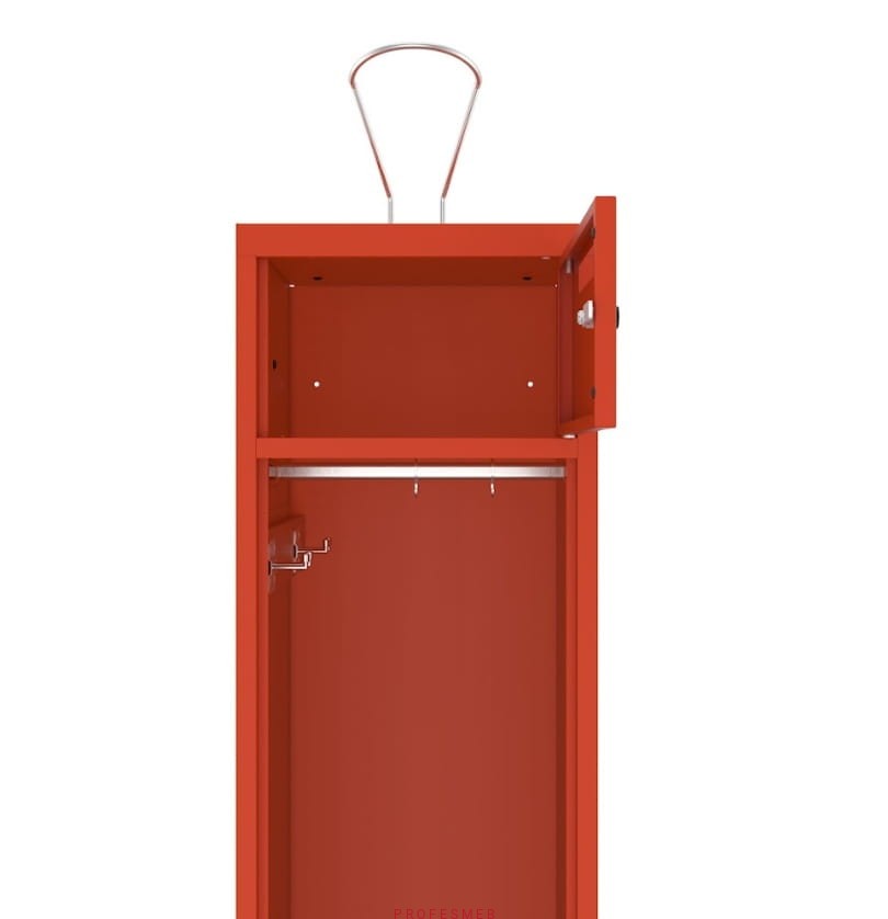Wymiary: 180 x 120 x 50 cm + Uchwyt 21,4 cm (wysokość szafy z uchwytem na hełm 201,4 cm)