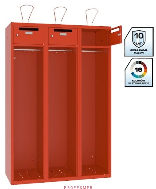 Szafa strażacka 3 komorowa MALOW MSS 430 z uchwytem na hełm i szafeczką wrzutową na klucz