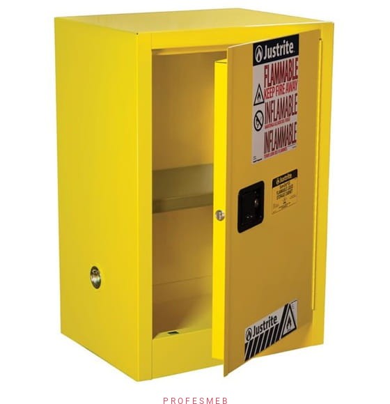 Szafa zabezpieczająca 1 drzwiowa żółta zabezpieczająca na materiały łatwopalne Sure-Grip Ex JUSTRITE 1 półka 45 litrów