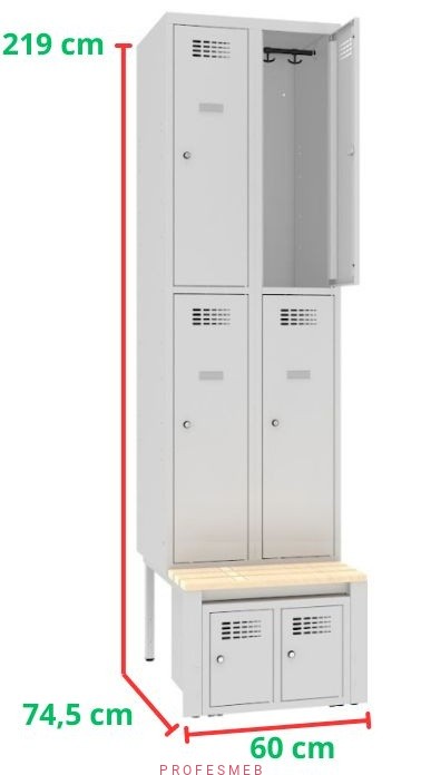 Szafka SUS 322 z ławką i szafką na buty - kompletne stanowisko szatniowe BHP dla biur, magazynów i dużych firm