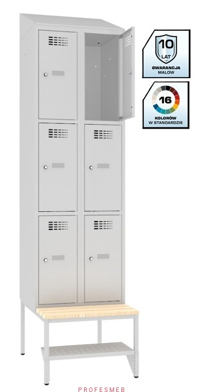 Szafka metalowa skrytkowa SUS 323 MALOW z ławką stałą, półką na buty i daszkiem skośnym