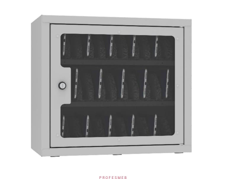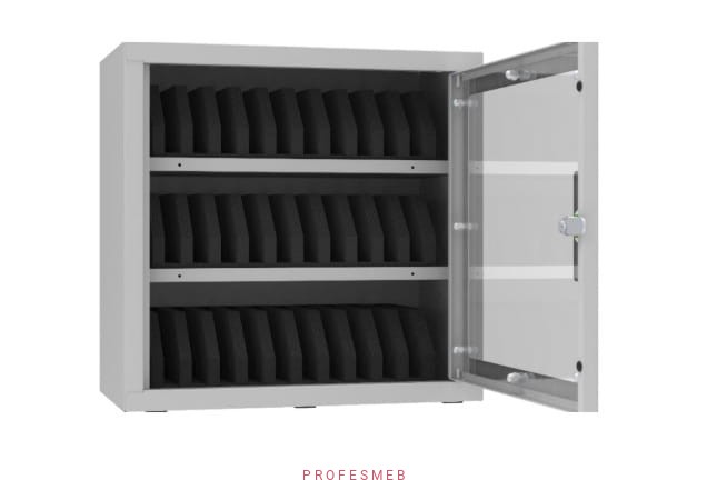 Szafka metalowa na smartfony do szkół SKA 30 wisząca drzwi metalowe z wkładką plexi zamykane na klucz