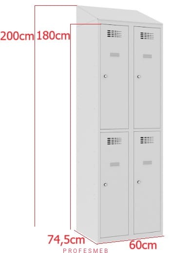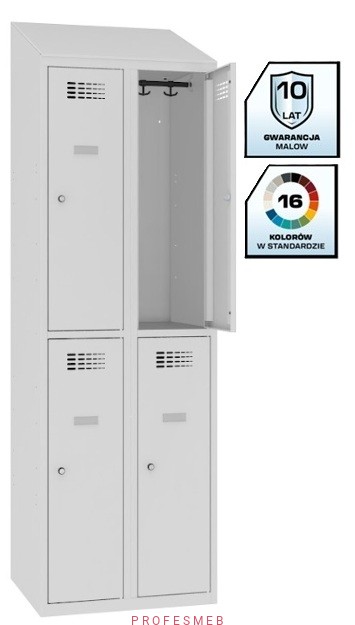 Szafka socjalna Sus 322 W ST BHP Malow do przebieralni 4 drzwiowa 30x90cm z daszkiem skośnym wymiar 200x60x50cm