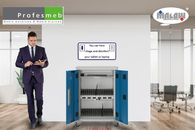 ☑️ Wózek na tablety WNT33Qv z możliwością dezynfekcji przechowywanych w nim urządzeń za pomocą promieniowania UV-C.